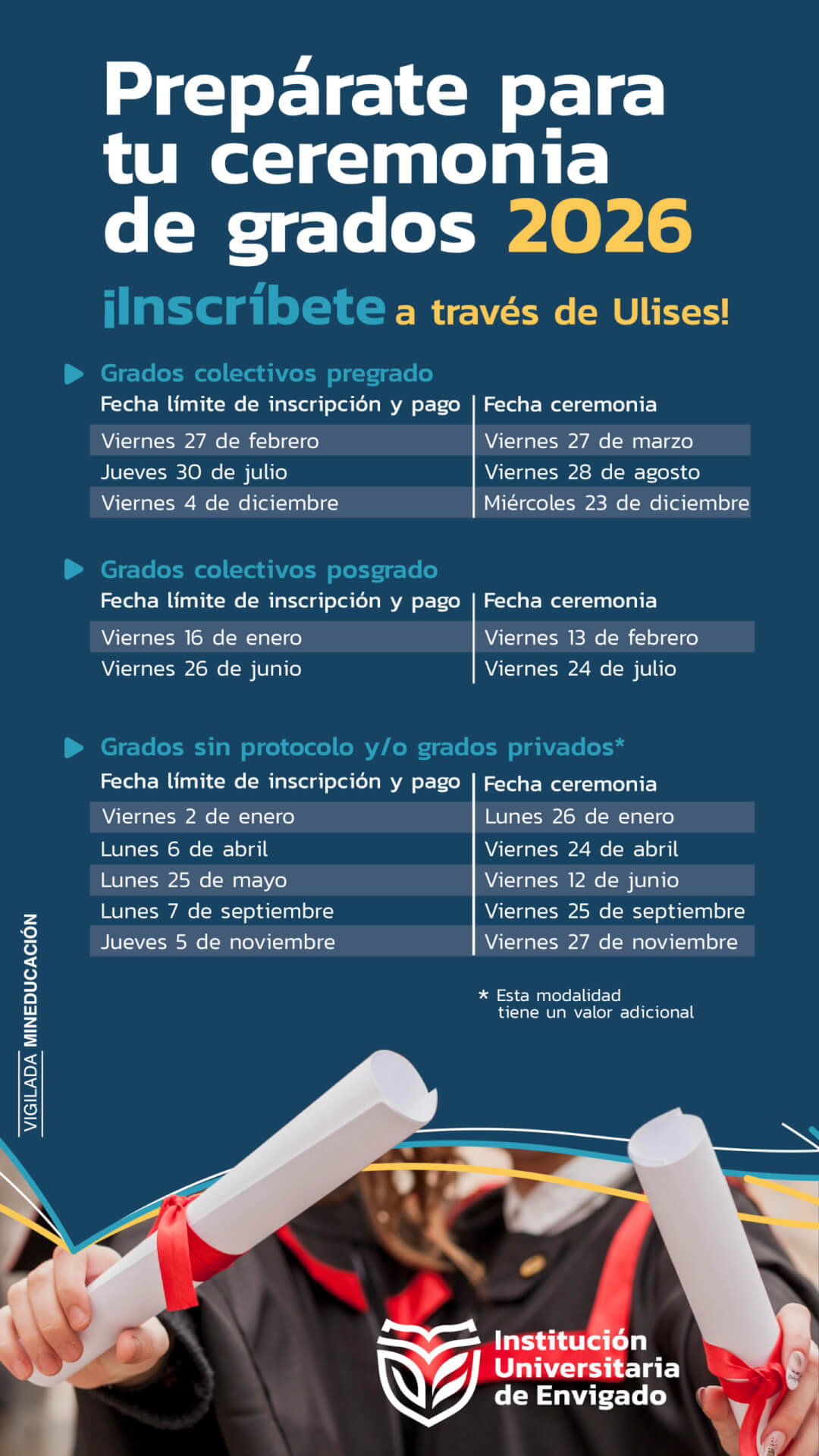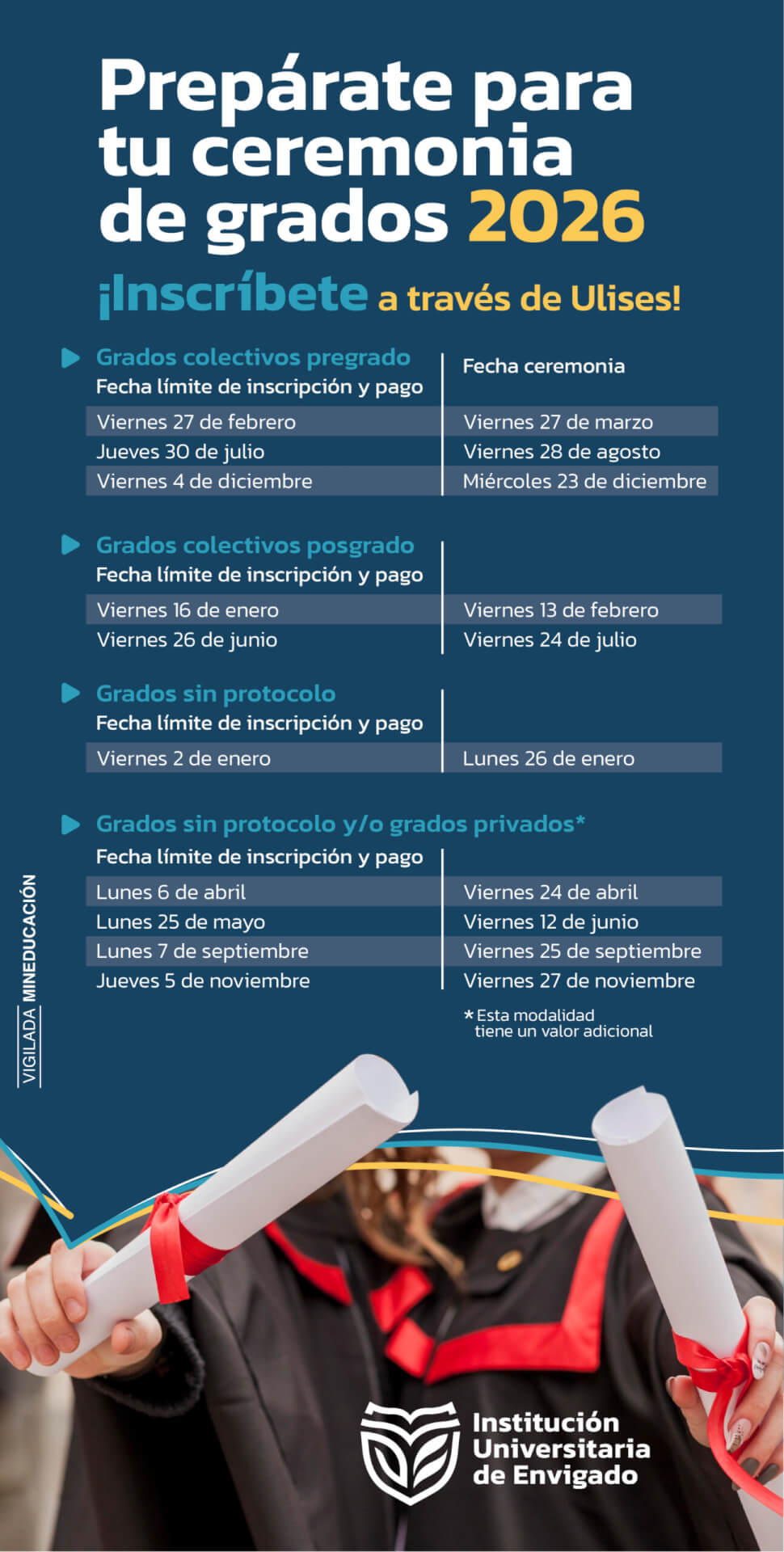 Conoce la programación de fechas que tiene establecida la Universidad de Envigado para las Ceremonias de Grados